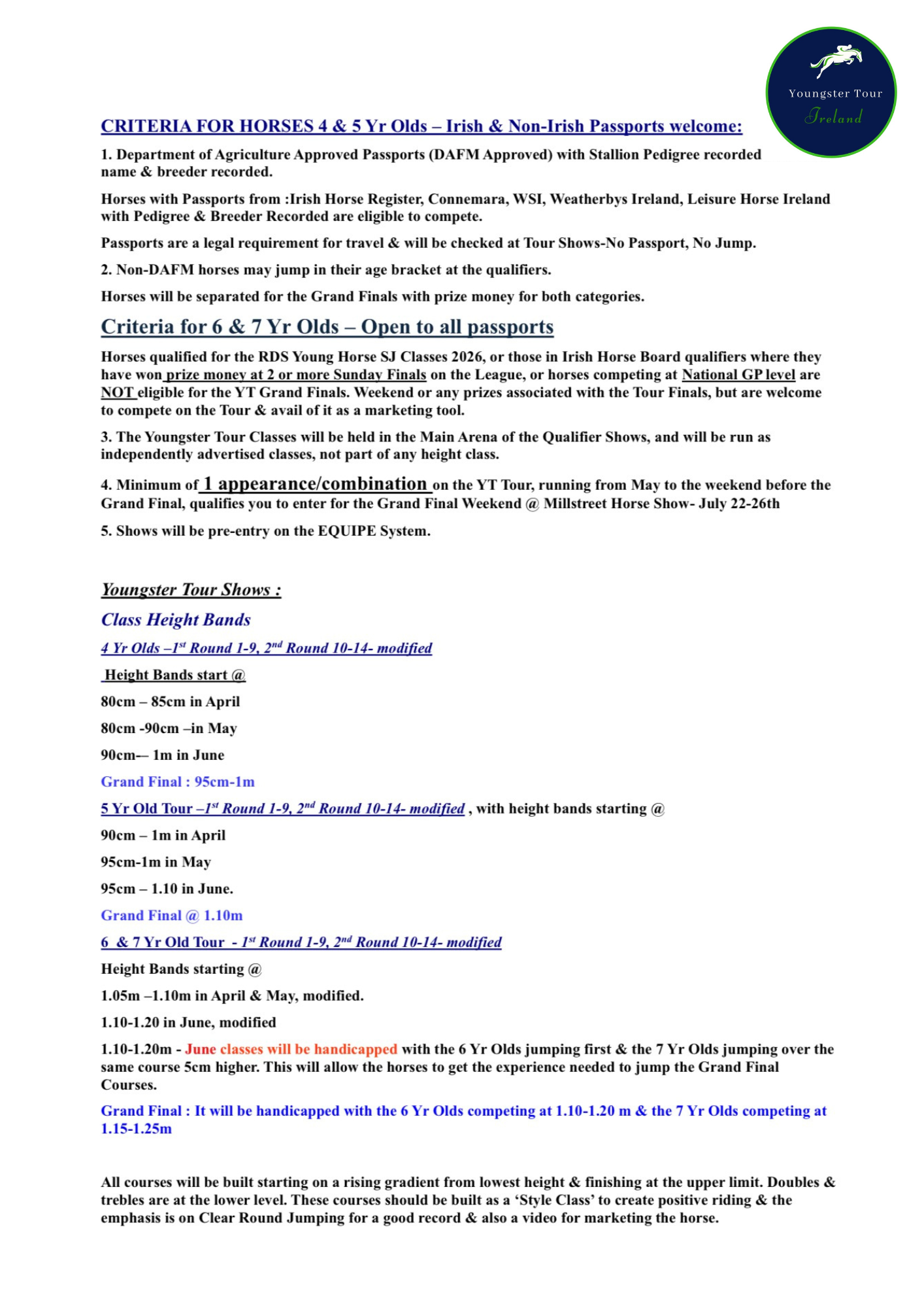 Criteria for the Younster Tour
